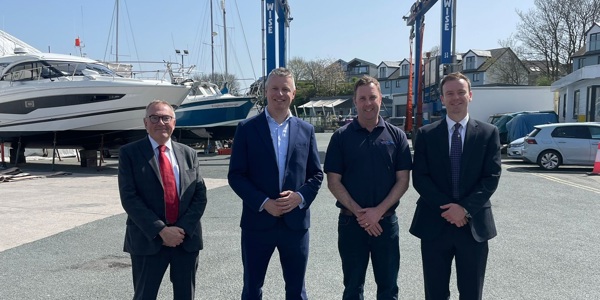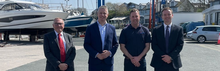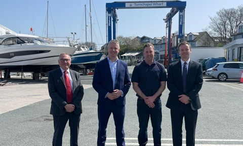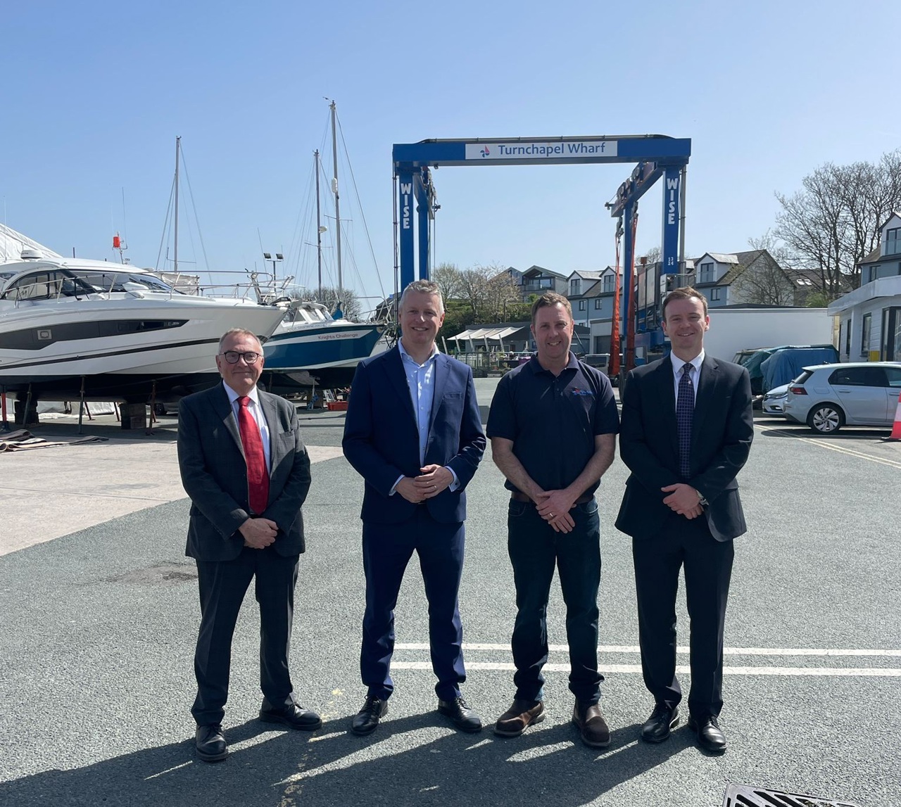 Photo (L-R): Tudor Evans OBE Plymouth City Council, Luke Pollard MP, Turnchapel Wharf Director Ryan Bonney, Fred Thomas MP.