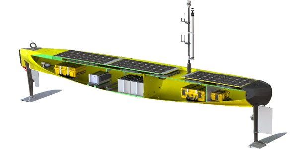 AutoNaut's state-of-the-art USV is propelled by wave energy with onboard data instruments powered by solar energy and used to collect valuable oceanic data. Operating independently, the USV's passage is overseen from the safety of shore allowing the USV to travel into hazardous marine environments.